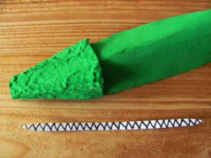 ![]() Простой способ сделать поделку крокодила с дошкольниками 5-6 лет или детьми школьного возраста- использовать картон от туалетных рулонов и яичных контейнеров. Почитать подробнее как сделать [/b] ![]() Из картонного контейнера от яиц вырезаем острую часть. ![]() Из нее мы сделаем крокодилу морду и хвост, поэтому разрезаем ее на части по линии, показанной на фото. ![]() Тело крокодила делаем из половинки туалетного рулона, разрезанного вдоль. ![]() Приклеиваем голову и хвост к телу. Красим всего крокодила зеленой краской. ![]() Глаза вырезаем из бумаги ![]() Получившийся бумажный глаз наклеиваем на кусок картона, покрашенного в зеленый цвет. ![]() Делаем на морде прорези для вставки глаз. ![]() Вставляем глаза. Из остатков картона вырезаем 4 лапы ![]() И приклеиваем их с внутренней стороны крокодила ![]() Вырезаем из белой бумаги полоску и рисуем на ней зубы. ![]() Приклеиваем полоску на крокодила Источник: patchworkparent.blogspot.co.uk Нет комментариев. Ваш будет первым! |