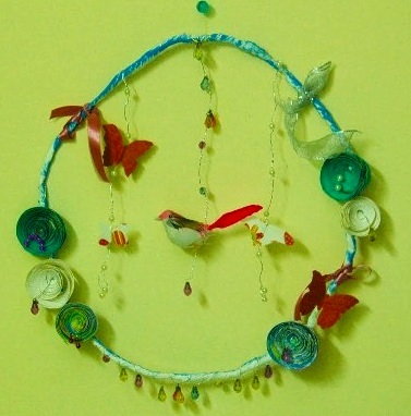 ![]() Интересное весеннее украшение на стену можно сделать с детьми школьного возраста из проволоки, ленточек, бумаги, бусин и других подручных материалов. А здесь можно почитать как сделать цветочное украшение на стену из яичных контейнеров Почитать подробнее с фото как [/b] ![]() Цветочки для украшения можно сделать из бумаги. ![]() Скручиваем круг из толстой проволоки. Обматываем его лентой, полосками ткани. Украшаем его цветочками ![]() Делаем подвески из бусин. ![]() Украшаем бантиками и птичками. ![]() Источник: kosmicchai.blogspot.ru Нет комментариев. Ваш будет первым! |