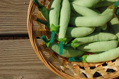 ![]() Стручки гороха, жутко похожие на настоящие можно довольно быстро сшить самому. А здесь можно посмотреть как шить баклажан , редиску, морковку, помидор, лук Почитать подробное описание с фото и выкройкой как [/b] ![]() Лист выкройки можно сохранить отдельным файлом и увеличить до нужного размера. ![]() Вот что нам понадобится. Светло-зеленая войлочная ткань для стручков, бусины горошины, кусок зеленой липучки-отрезать стебелек. ![]() Переносим выкройку на ткань и вырезаем две половинки стручка. Накладываем половинки друг на друга. От липучки отрезаем тонкую полоску и вставляем ее между половинками стручка как нарисовано на выкройке, конец полоске на линии шва. ![]() Сшиваем половинки между собой , оставив отверстие для выворачивания. Выворачиваем стручок на лицевую сторону. Стебелек окажется снаружи. Вставляем внутрь мягкий наполнитель и бусины горошины. Зашиваем стручок до конца. ![]() Вырезаем зазубренный листик из ткани потемнее. ![]() и пришиваем его вокруг стебелька. ![]() Таких стручков гороха можно сшить целую корзину. ![]() Источник: ikatbag.com Нет комментариев. Ваш будет первым! |