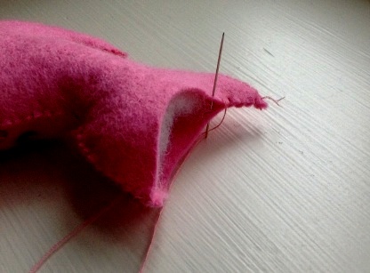 ![]() Рыбку из войлочной ткани сшить довольно просто. Больше времени займет пришивание блесток, но с ними они смотрится гораздо интереснее. А здесь можно почитать как сшить рыбу из лоскутов Почитать подробное описание с фото [/b] Фетровую ткань и другие товары для детского творчества по низким ценам в огромном ассортименте можно КУПИТЬ в интернет магазине My-shop.ru ![]() Листы фетра А4 10 цветов В комплекте: 10 листов[/b] ![]() Вот все что нам понадобится для шитья рыбки из войлочной ткани. ![]() Рисуем на бумаге силуэт рыбки, похожий на тот, что на фото. Переносим его на ткань, сложенную пополам. ![]() Вырезаем два одинаковых силуэта рыбки. ![]() Делаем декоративные стежки, чтобы обозначить линии плавников и хвоста. Если рыбка будет двусторонней, такие же линии надо пришить на второй заготовке. ![]() ![]() Теперь самое сложное: нашивание блесток. Делаем это внахлест как чешую. ![]() Чтобы сделать рыбке глаз, пришиваем одну блестку, а сверху маленькую бусину. ![]() Одна сторона рыбки украшена блестками. Можно также поступить со второй стороной. Для тех, кто не очень любит шить, есть вариант блестки приклеить. ![]() Накладываем две стороны рыбки друг на друга лицевой стороной наружу. ![]() Сшиваем их между собой швом через край. ![]() Хвост пока не зашиваем до конца. Через него будем набивать мягким наполнителем. ![]() Для набивки можно использовать ножницы с острыми концами, карандаш или палочку. ![]() Зашиваем хвост. Рыбка готова! Источник: holloughby.blogspot.ru ← Шьем утку | Баклажан из ткани →