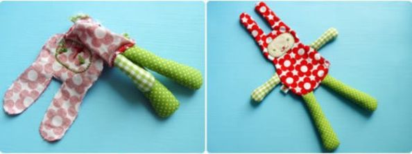 ![]() Симпатичного зайца или зайчиху можно сшить из тканей ярких пестрых расцветок. А здесь можно почитать как сшить зайчика из носка и маленького зайчика из ткани, поделки зайцы из бумаги и картона, зайцы из пластилина, сделать из бумаги зайчика оригами Почитать подробное описание с фото как сшить [/b] ![]() Рисуем на бумаге простые очертания зайца как на фото. Отдельно рисуем передние лапы, ноги и овал мордочки. ![]() Переносим выкройку на ткань. ![]() Овал мордочки можно вырезать из белой войлочной ткани. Пришиваем ее к лицу зайца швом через край или зигзагом на машинке. ![]() Вшиваем лицо. ![]() Сшиваем на из нанку руки и ноги зайца, надрезаем швы в местах самых крутых изгибов и выворачиваем на лицевую сторону. Набиваем мягким наполнителем. ![]() Отметим фломастером места, где будем вшивать руки и ноги. ![]() Скрепляем две половинки зайца лицевой стороной друг к другу. Руки и ноги надо вставить между двумя слоями ткани в отмеченных местах. Кончики рук и ног смотря внутрь зайца. Основания рук и ног помощаем на линии шва. ![]() Сшиваем две половинки между собой , одновременно вшив руки и ноги. Оставляем только незашитым только отверстие для выворачивания между ногами. ![]() Выворачиваем зайца на лицевую сторону, набиваем мягким наполнителем, зашиваем отверстие. ![]() Теперь можно поделать над аксессуарами: сделать зайцу шарф или сшить передник. ![]() Источник: cutoutandkeep.net ← Шить гусениц | Кит из ткани →