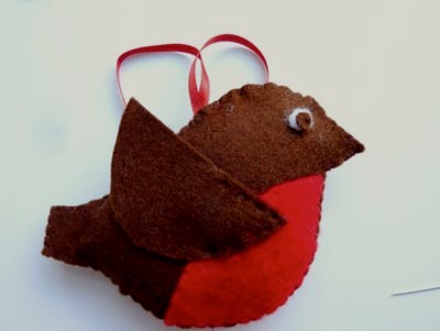 ![]() Из войлочной ткани можно шить такие маленькие, но милые игрушки, которые подойдут для небольшой новогодней елки. Посмотреть подробное описание с фото и выкройкой [/b] Начнем со снегиря. Лист выкройки можно сохранить отдельным файлом и увеличить до нужного размера. ![]() Все детали для снегиря вырезаем из ткани по 2шт. Для грудки нужна ткань красного цвета. ![]() Две половинки птицы сшиваем швом через край, начиная с точки, отмеченной на выкройке. Не доходя пары см до конца, помешаем внутрь с помощью палочки немного мягкого наполнителя. Отрезаем кусок тонкой атласной ленточки, сгибаем ее пополам и вставляем концы в отверстие, чтобы, заканчивая сшивание, прошить и ленточку ( лучше несколько раз). ![]() Теперь красной ниткой пришиваем снегирю грудку с одной и с другой стороны. ![]() Оба крыла пришиваем только уголком, по линии отмеченной на выкройке пунктиром. ![]() Остальная часть крыла остается свободной ![]() Осталось сделать снегирю глаза. Для этого можно вырезать из войлока два маленьких кружка: белый и коричневый. Белый чуть побольше. Коричневый накладываем на белый и пришиваем к снегирю. Теперь рождественский носок. ![]() ![]() Две половинки носка сшиваем мелкими стежками. Не доходя около см до конца вставляем концы ленточки, чтобы вшить ее в уголке между слоями ткани. Вход в носок остается не зашитым. Внутрь кладем немножко мягкого наполнителя для объема. Вдоль края сверху накладываем красную манжету с зигзагообразным краем. Замыкаем ее вокруг входа в носок и пришиваем мелкими стежками красной ниткой. ![]() Чтобы придать носочку более праздничный вид, нашиваем вдоль края красные блестки, нахлестом друг на друга. Там где идет нахлест одной блестки на другую прячется стежок через край блестки, поэтому стежок заметен только на последней. Переходим к новогоднему оленю. ![]() Вырезаем две половинки оленя из коричневого войлока. ![]() Две половинки оленя сшиваем мелкими стежками , начиная с точки, отмеченной на выкройке. Сшиваем все, кроме рогов. Не доходя пары см до конца, помешаем внутрь с помощью палочки немного мягкого наполнителя. Вставляем ленточку и дошиваем до конца. ![]() Пришиваем к оленю в районе носа по одной красной блестке с обеих сторон. Чуть раздвигаем рога. Можно вешать на елку! Коробку с подарком, перевязанную ленточкой сшить проще всего. Ее выкройка -это просто квадрат. ![]() Вырезаем два квадрата из красного войлока. ![]() Две половинки сшиваем мелкими стежками контрастной ниткой , начиная с точки, отмеченной на выкройке. Не доходя пары см до конца, помешаем внутрь немного мягкого наполнителя. Вставляем ленточку и дошиваем до конца. ![]() Теперь отрезаем ленточку подлиннее, чтобы перевязать "подарок". ![]() Лишние концы ленты отрезаем. В центре, где бантик фиксируем его парой стежков, чтобы не развязался. Источник: sewmamasew.com Нет комментариев. Ваш будет первым! |